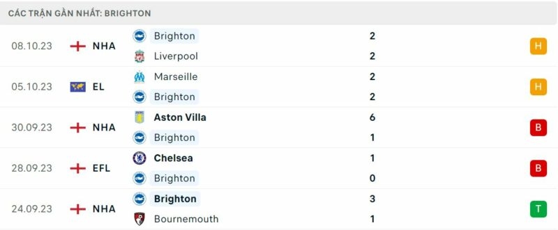 “Chim mòng biển” có phong độ không tốt trong thời gian qua. Họ toàn hòa và thua trong 4 trận gần nhất trên mọi đấu trường. Nhưng cũng phải nói là các đối thủ của Brighton đều không hề dễ chịu. Đội bóng này thất bại trước Chelsea đang trên đà hồi sinh, và một Aston Villa đầy gai góc dưới thời Unai Emery.