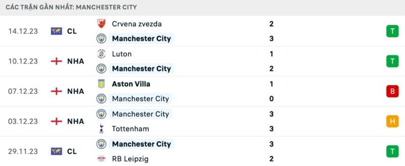 Phong độ Man City vs Crystal Palace