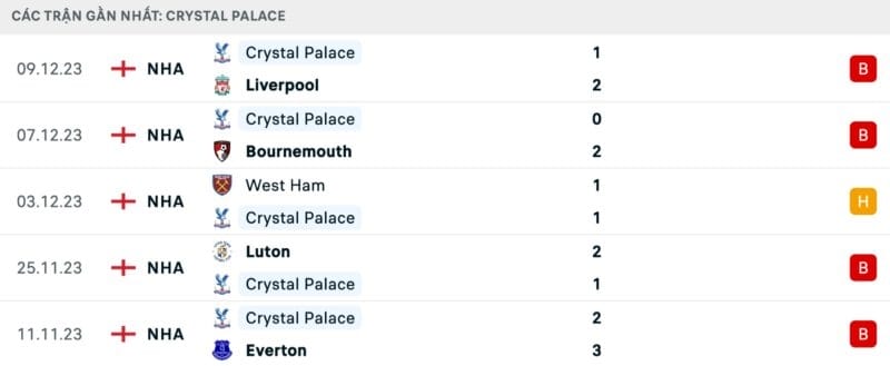 Trái ngược với Man City đang dần tìm lại sự tự tin, đội khách Palace lại chìm sâu trong khủng hoảng. Họ đã trải qua 5 trận đấu liên tiếp không biết mùi chiến thắng tại Ngoại hạng Anh.