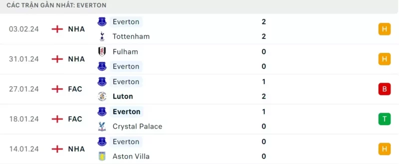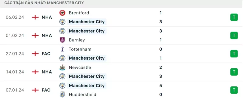 Phong độ gần đây Man City vs Everton: