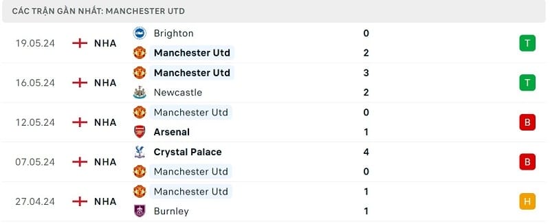 Cụ thể, Man United chỉ có được vị trí thứ 8 chung cuộc với tổng cộng 60 điểm và hiệu số -1. Đây là vị trí thấp nhất của nửa đỏ thành Manchester trong lịch sử Ngoại hạng Anh. Phong độ thời gian qua của Man United cũng khá bất ổn. Đoàn quân của HLV Erik ten Hag giành được 2 chiến thắng, 1 trận hòa và nhận đến 2 thất bại.