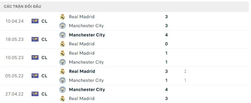 Thậm chí Kền Kền Trắng còn có khả năng thua trận này rất cao, bởi họ đã bị Man City của Pep Guardiola đánh bại trong cả 4 lần gần nhất làm khách đến đây. Liệu ADN Champions League có giúp gã khổng lồ thành Madrid phá dớp ở trận đấu sắp tới? Hãy cùng chờ đợi và đón xem trận đấu hấp dẫn này nhé.