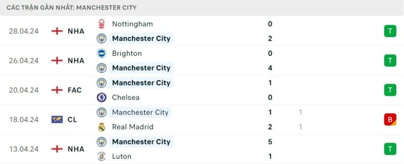 Chiến thắng dễ dàng 2-0 trước Nottingham Forest ở vòng trước đã là trận đấu bất bại thứ 18 liên tiếp của nhà đương kim vô địch. Nếu tính trên mọi đấu trường, chuỗi bất bại của họ đã lên tới con số 31. Man City vẫn đang là đội nắm trong tay quyền tự quyết chức vô địch Ngoại hạng Anh. Họ chỉ kém đội đầu bảng Arsenal 1 điểm nhưng thi đấu ít hơn 1 trận.