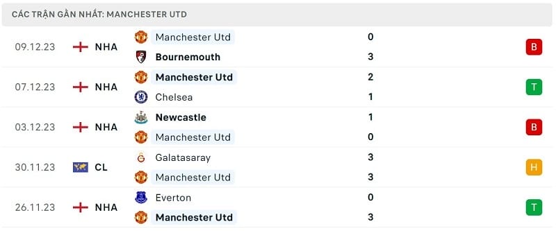 Tương tự Bayern Munich, Man United cũng có bước chạy đà cực kỳ tệ hại cho cuộc chạm trán trên sân Old Trafford tới đây. Đoàn quân của HLV Erik ten Hag bất lực trước Bournemouth và phải nhận thất bại 0-3 chung cuộc. Nếu không sớm xốc lại tinh thần, Man United khả năng cao sẽ nhận thêm một trận thua nữa khi chạm trán Hùm xám.