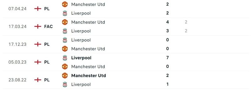 - Liverpool: Fabio Carvalho (10’), Curtis Jones (36’), Konstantinos Tsimikas (61’).