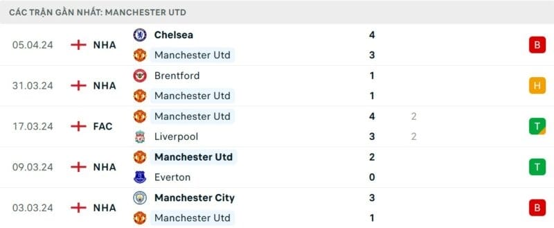 Phong độ Man United vs Liverpool