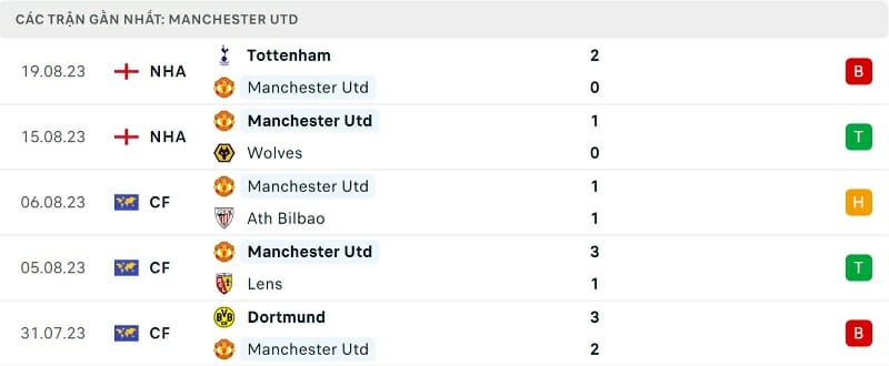 Phong độ Man United vs Nottingham Forest