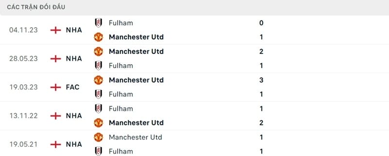 Thành tích đối đầu Man Utd vs Fulham: