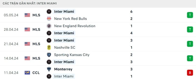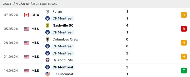 Phong độ gần đây Montreal vs Inter Miami