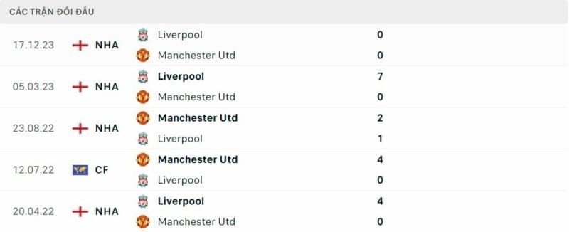Thành tích đối đầu MU vs Liverpool