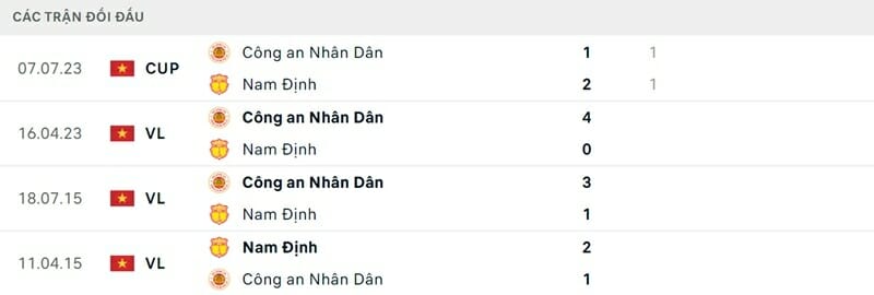 Thành tích đối đầu Nam Định vs CAHN
