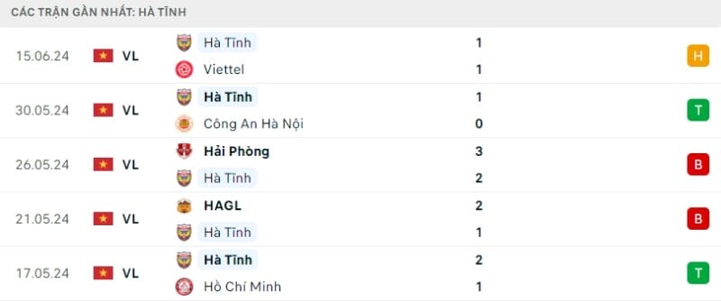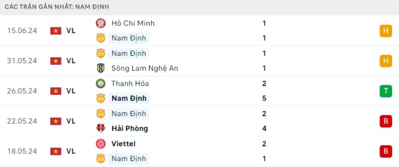 Phong độ gần đây Nam Định vs Hà Tĩnh