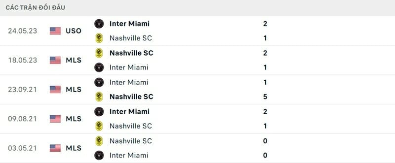 Thành tích đối đầu Nashville vs Inter Miami
