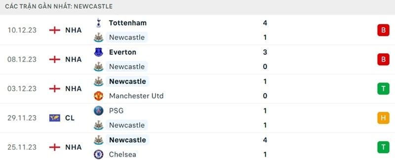 Phong độ gần đây Newcastle vs AC Milan: