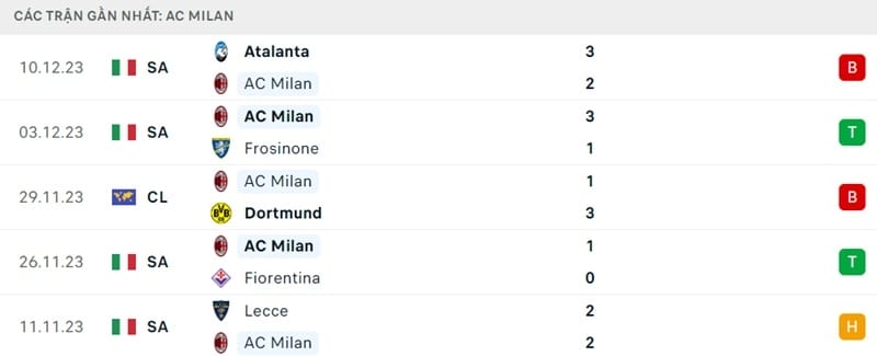 Về phần Milan, CLB Serie A thể hiện bộ mặt thiếu ổn định. Thầy trò Pioli thi đấu trên sân khách rất tệ khi không thắng 4 trận gần nhất. Trong giai đoạn này, Milan nhận tất thảy 10 bàn thua và thường chơi lép vế so với đối thủ. Mới đây là thất bại 2-3 trước Atalanta tại Serie A và kết quả đó khiến Milan kém vị trí đầu bảng do Inter Milan nắm giữ 9 điểm.