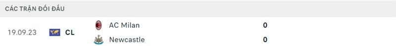 Thành tích đối đầu Newcastle vs AC Milan: