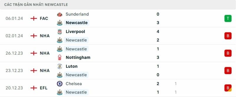 Phong độ Newcastle vs Man City