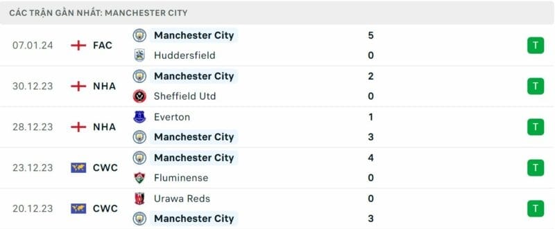 Sự trở lại của Kevin De Bruyne trước Huddersfield ở FA Cup là điểm nổi bật đối với Man City trong màn thị uy 5 bàn không gỡ trước đối thủ. Đoàn quân của Pep hiện đã thắng 5 trận liên tiếp trong khi chỉ để thủng lưới 1 lần. Họ kém đội dẫn đầu Liverpool 5 điểm, nhưng còn 1 trận chưa đấu trong tay. Chiến thắng tới đây sẽ giúp họ giữ được lợi thế và có thể là điều đáng lo ngại cho các đối thủ vì Man City nổi tiếng với khả năng bứt tốc vào cuối mùa giải.