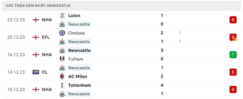 Việc thiếu vắng quá nhiều cầu thủ rõ ràng ảnh hưởng cực lớn đến thành tích của Newcastle. Phong độ thời gian qua của Chích chòe không hề tốt. Trong 5 trận gần nhất trên mọi đấu trường, đoàn quân của HLV Eddie Howe chỉ có duy nhất 1 chiến thắng và phải nhận đến 4 thất bại.