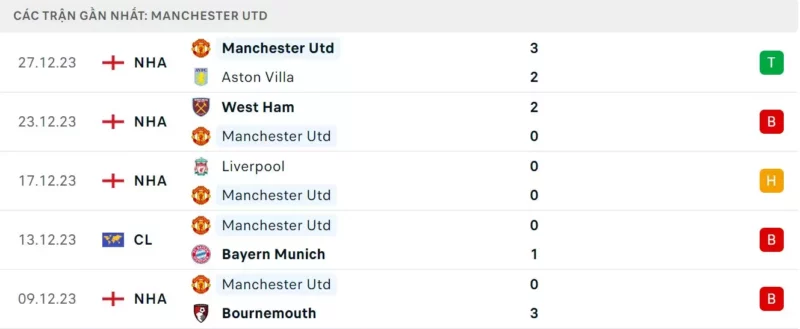 Phong độ Nottingham vs Man United