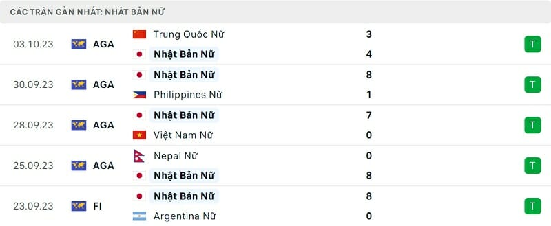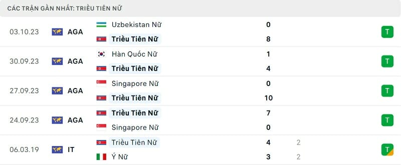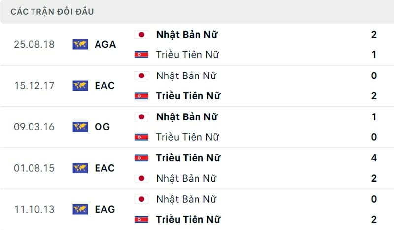 Thành tích đối đầu nữ Nhật Bản vs nữ Triều Tiên