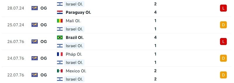 Thành tích đối đầu Olympic Israel vs Olympic Nhật Bản