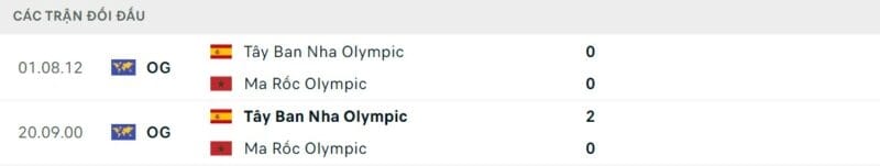 Thành tích đối đầu Olympic Ma Rốc vs Olympic Tây Ban Nha