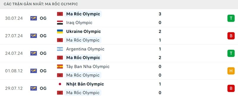 Phong độ thi đấu Olympic Morocco vs Olympic Mỹ