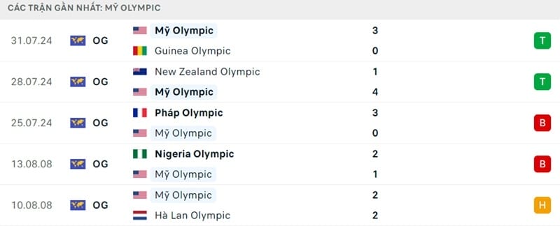Thành tích đối đầu Olympic Morocco vs Olympic Mỹ