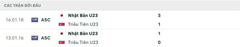 Thành tích đối đầu Olympic Nhật Bản vs Olympic Triều Tiên: