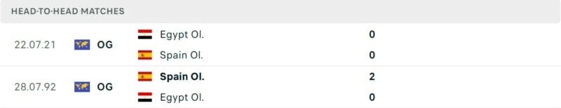 Thành tích đối đầu Olympic Tây Ban Nha vs Olympic Ai Cập