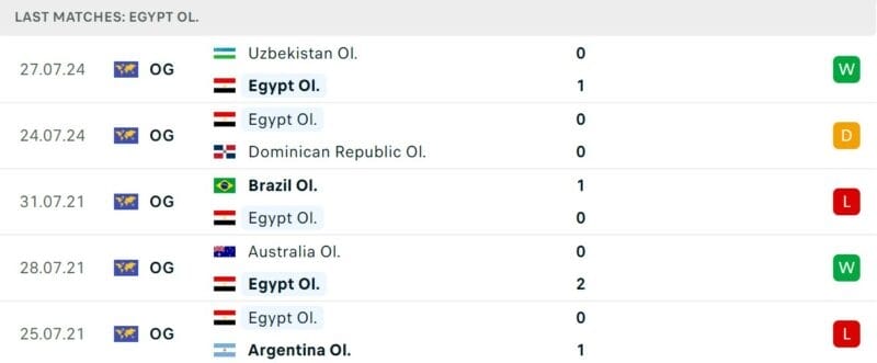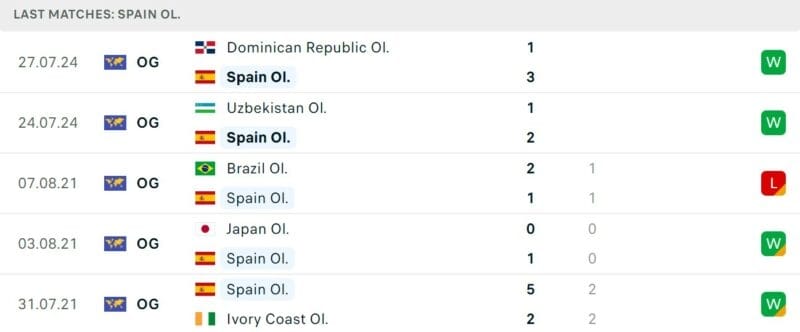 Phong độ gần đây Olympic Tây Ban Nha vs Olympic Ai Cập
