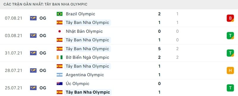 Phong độ gần đây Olympic Uzbekistan vs Olympic Tây Ban Nha