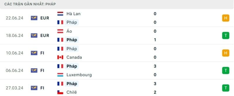 ĐT Pháp được đánh giá là ứng viên sáng giá nhất cho ngôi vương Euro 2024 trước khi bước vào giải. Tuy nhiên, màn thể hiện của Les Bleus sau 2 trận đấu đầu tiên là tương đối thất vọng. Họ chỉ mới ghi được vỏn vẹn 1 bàn thắng từ tình huống phản lưới nhà của đối phương. Bên cạnh đó, Les Bleus cũng trình diễn lối chơi khá nhạt nhòa. Dù vậy, với 4 điểm trong tay, Pháp cũng đang rộng cửa đi tiếp.