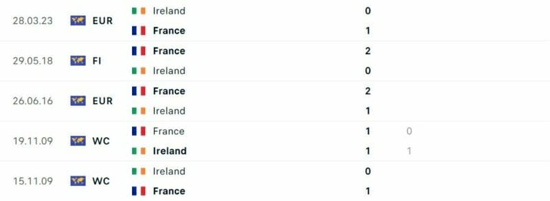 Thành tích đối đầu Pháp vs CH Ireland