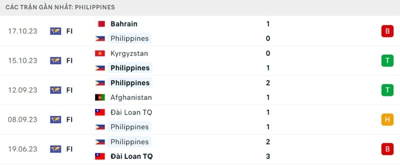 Phong độ Philippines vs Việt Nam