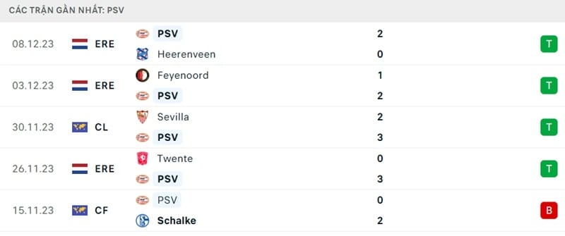 Mới đây, họ vừa đánh bại Heerenveen trên sân nhà tại vòng 15 giải Eredivisie. Với 3 điểm, đội chủ sân Philips Stadion tiếp tục củng cố vững chắc ngôi vị dẫn đầu. Cụ thể sau 15 vòng đấu, PSV giành trọn vẹn 45 điểm. Theo đó, họ đã toàn thắng tại Eredivisie mùa giải này. Trong lịch sử, có rất ít đội bóng từng làm được điều đó.