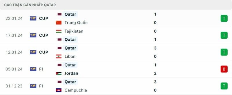 Phong độ Qatar vs Palestine