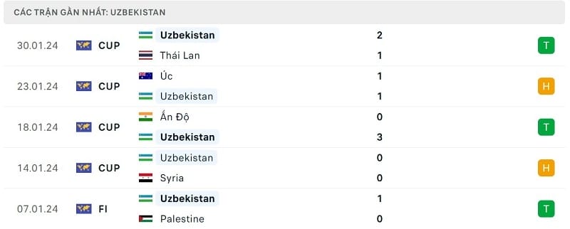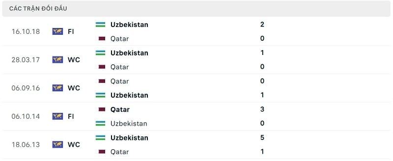 Thành tích đối đầu Qatar vs Uzbekistan: