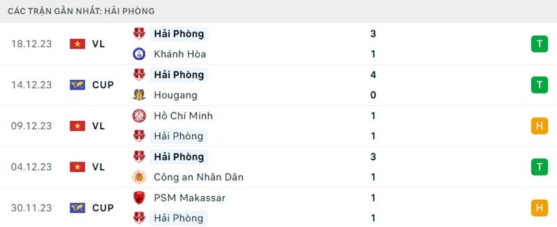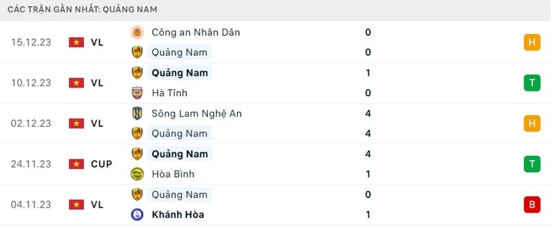 Phong độ Quảng Nam vs Hải Phòng
