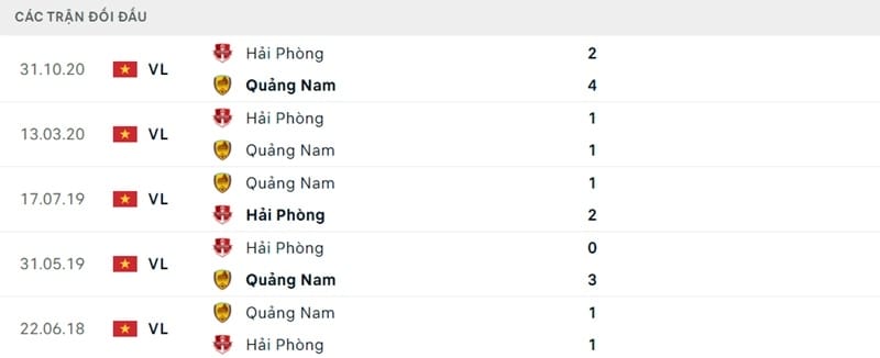Thành tích đối đầu Quảng Nam vs Hải Phòng