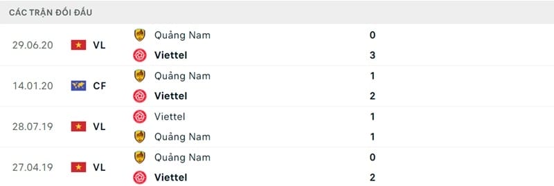 Thành tích đối đầu Quảng Nam vs Viettel: