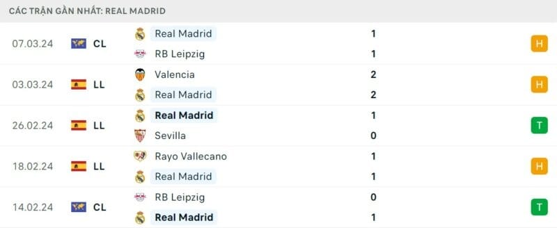Hồi giữa tuần, thầy trò HLV Carlo Ancelotti lại để RB Leipzig cầm hòa 1-1. Dù vậy kết quả này là đủ để Los Blancos giành vé tiến vào tứ kết Champions League.
