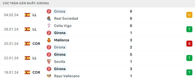 Như đã đề cập, Girona từng thua 0-3 trước Real ở đầu mùa giải này. Tuy nhiên, họ cũng khiến Los Blancos muối mặt bằng chiến thắng 4-2 trên sân nhà ở mùa giải trước và đã thiết lập chuỗi 3 trận bất bại trước Real cho đến lúc 2 đội gặp nhau vào tháng 9 năm ngoái.