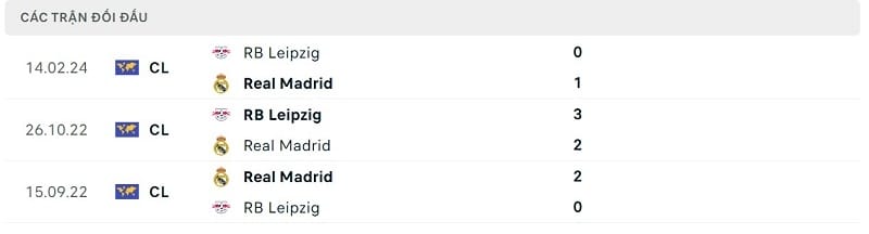 Thành tích đối đầu Real Madrid vs RB Leipzig: