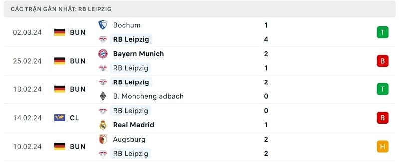 Chiến thắng trên giúp RB Leipzig có tổng cộng 43 điểm và đứng thứ 5 tại Bundesliga 2023/24. Die Roten Bullen hiện chỉ kém vị trí thứ 4 của Dortmund duy nhất 1 điểm. Trong 5 trận gần nhất tính trên mọi đấu trường, RB Leipzig nhận 2 thất bại nhưng người hâm mộ hoàn toàn có thể thông cảm cho thầy trò HLV Marco Rose bởi họ để thua hai ông lớn là Real Madrid và Bayern Munich.