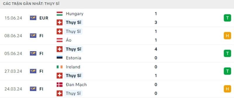Phong độ gần đây Scotland vs Thụy Sĩ