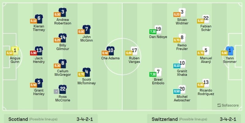 Đội hình dự kiến Scotland vs Thụy Sĩ