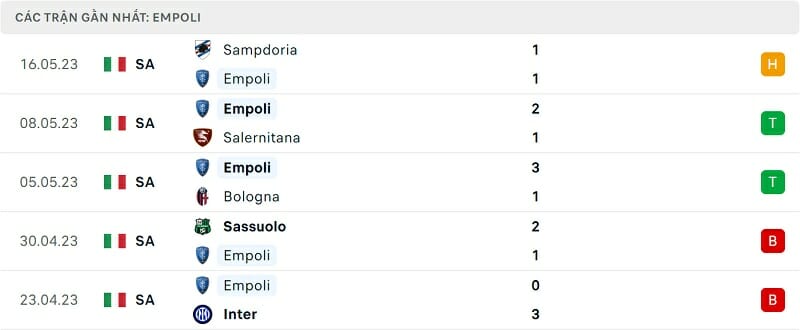 Phong độ Empoli vs Juventus