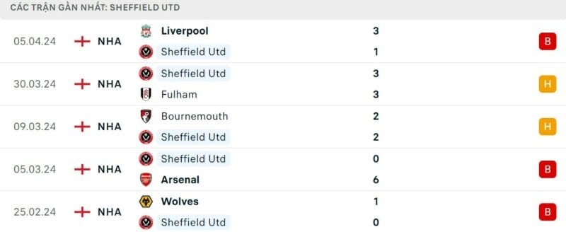 Phong độ gần đây Sheffield United vs Chelsea